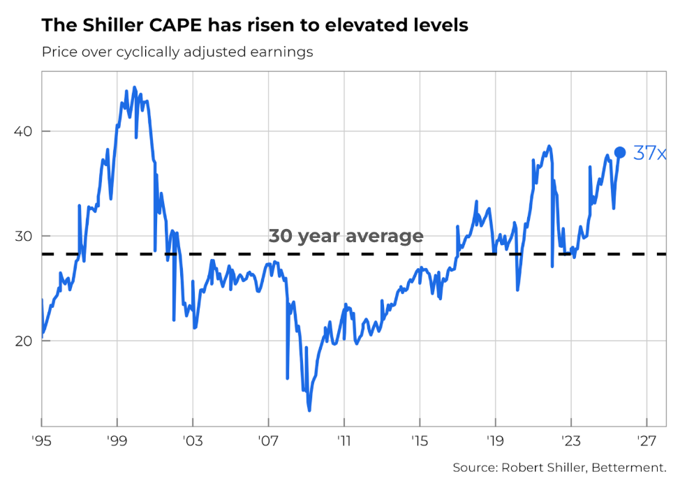 - Shifting some stock exposure to bonds can reduce risk. *Valuations don’t predict near-term moves—stay balanced.
